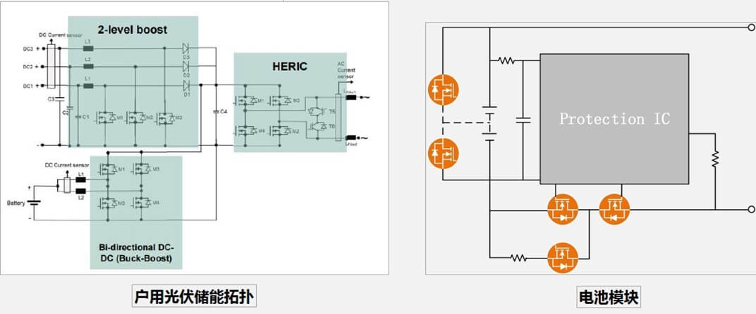 分立器件為戶用光伏儲能及其BMS中的核心器件,無論是戶用光伏儲能還是電池模塊都在往高功率密度、高效率的趨勢發(fā)展,同時要求安全可靠,給MOSFET在提出了更高的要求。