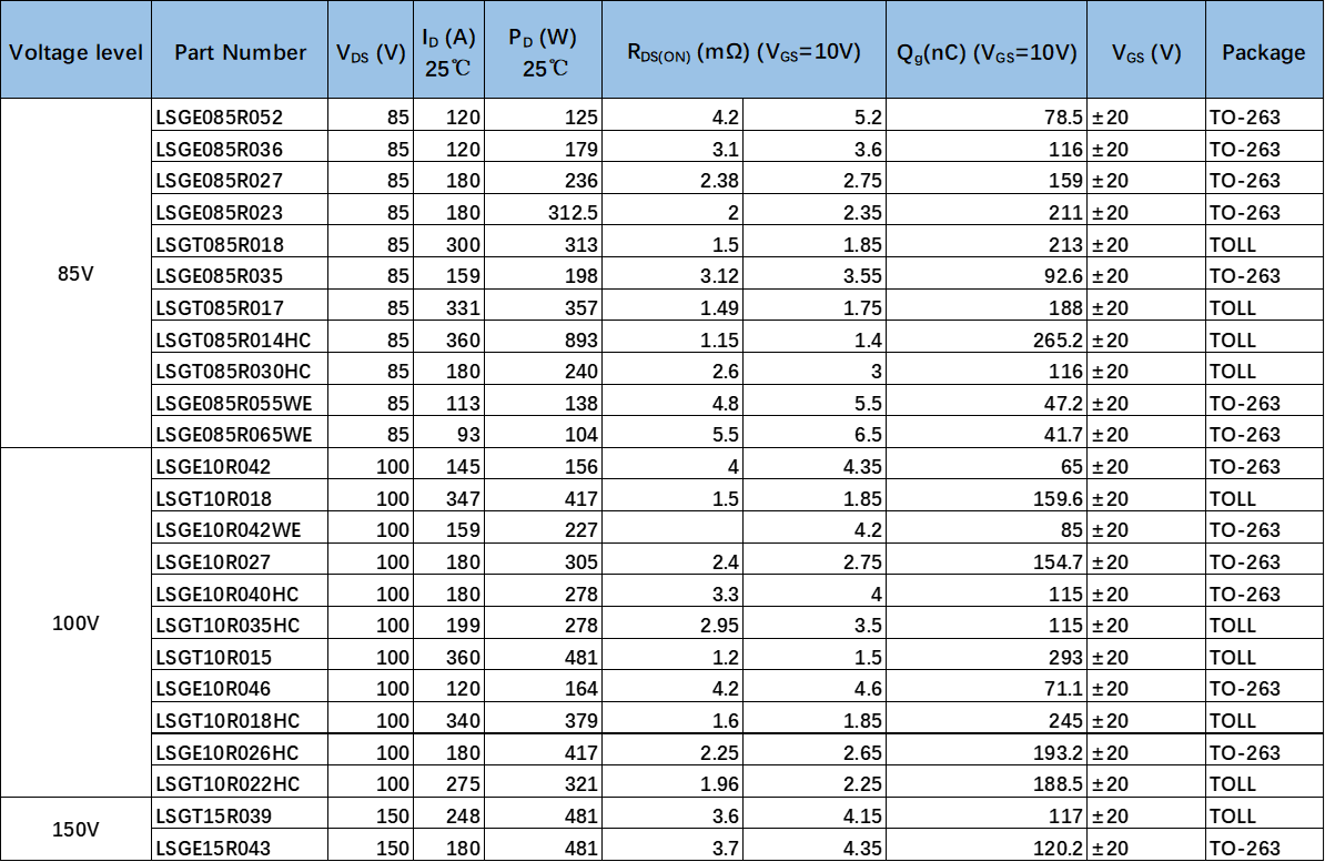 客戶的方案使用了16顆龍騰的SGT MOS LSGE10R040HC。100V 導通內阻最大值4mΩ,封裝 TO-263。