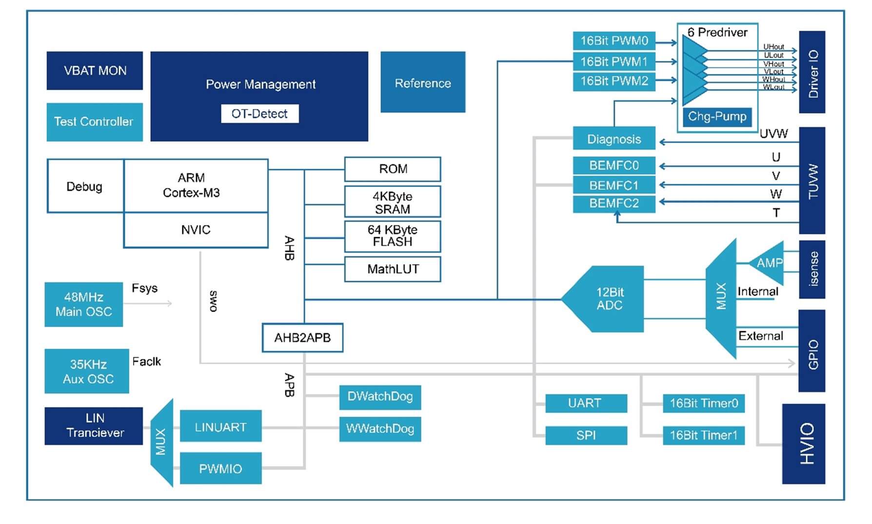 納芯微精心打造的高集成度嵌入式電機控制 IC NSUC1602,依托其超群絕倫的高集成特性以及強勁有力的電機控制算法,在新能源汽車關(guān)鍵執(zhí)行器的管控進程中扮演著不可或缺的關(guān)鍵角色。該芯片內(nèi)部深度融合 ARM? Cortex? – M3 內(nèi)核與高效能的三相預(yù)驅(qū)電路,得以全方位支持更為前沿、復(fù)雜的電機控制算法,涵蓋 FOC 矢量控制或無感六步換相控制等先進技術(shù)。這些高階算法的廣泛應(yīng)用,極大幅度地提升了電動機與電子設(shè)備的溫度管理精度與效率,為智能三相無刷直流電機控制領(lǐng)域,諸如汽車電子冷卻扇、電子水泵等關(guān)鍵部件,提供了堅如磐石的技術(shù)支撐。此外,NSUC1602 還經(jīng)由一系列匠心獨運的優(yōu)化設(shè)計,促使系統(tǒng)整體能效得到顯著提升,即便在高負(fù)荷運行的極端環(huán)境下,依然能夠確保穩(wěn)定、可靠的卓越表現(xiàn)。