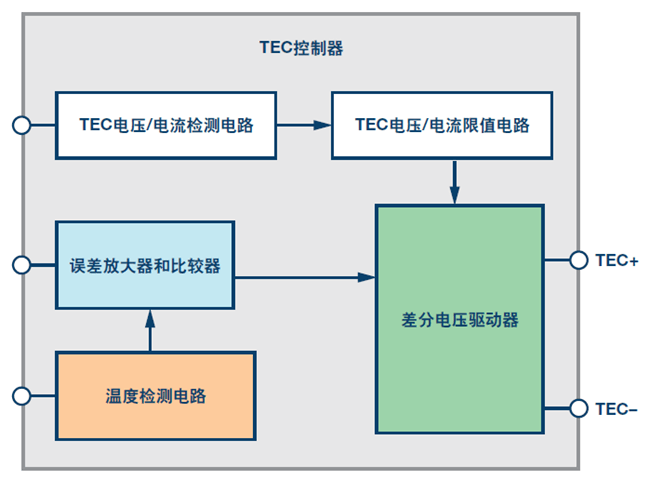 為了控制溫度,需要一個由熱敏電阻、TEC和TEC控制器組成的環(huán)路;TEC控制器將熱敏電阻反饋電壓與代表目標(biāo)溫度的基準(zhǔn)電壓進(jìn)行比較,然后控制流經(jīng)TEC的電流,從而調(diào)整TEC傳輸?shù)臒崃浚晃⒖刂破饔糜诒O(jiān)測和控制熱環(huán)路。TEC控制器是實(shí)現(xiàn)TEC制冷控制的重要組成部分,其性能指標(biāo)和功能特性對于整個系統(tǒng)的性能和穩(wěn)定性有著重要的影響;本文介紹的SGM41299 TEC控制器能助力客戶光模塊熱設(shè)計(jì)。