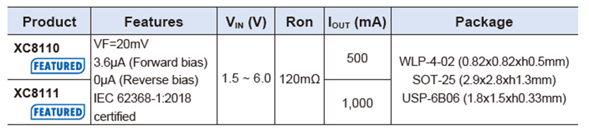 - 反向泄漏電流也為0μA,防止反向電流對(duì)前級(jí)電池等設(shè)備損耗