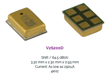 V2S200D體積小、信噪比(SNR)高、功耗低,對于那些希望提升產(chǎn)品用戶體驗,同時解決重要工業(yè)設計(ID)和電池壽命限制問題的OEM/ODM,它提供了理想的解決方案。此外,在集成到系統(tǒng)中后,它可仿真具有脈沖密度調(diào)制(PDM)接口的數(shù)字麥克風,使硬件和軟件開發(fā)變得輕松自如。