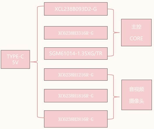 在AR眼鏡產(chǎn)品中,電路設(shè)計部分基本上集中在了鏡腿部分,所以需要一個輸出電壓0.9V的超小封裝的DCDC給主控和Core部分供電,電流需求1000mA,由于AR眼鏡的鏡腿部分空間有限,就要求此顆DCDC外圍電路越簡單越好,XCL238系列只需在外部元件上添加兩個陶瓷電容器即可創(chuàng)建電源電路。 由于線圈是內(nèi)置的,所以電路板布局更加容易,并且可以最大限度地減少因元件放置和接線而引起的故障和噪聲。非常符合AR眼鏡的核心電壓供電需求。